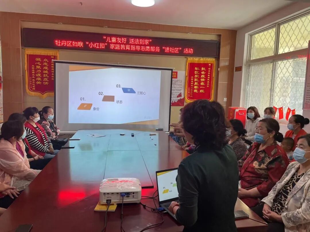 为发挥社区家长学校阵地作用,全面普及家庭教育科学理念,引导广大家长切实承担起家庭教育的主体责任,助力全国文明城市、儿童友好城市创建,牡丹区妇联开展“小红扣”家庭教育指导志愿服务“进社区”系列活动。