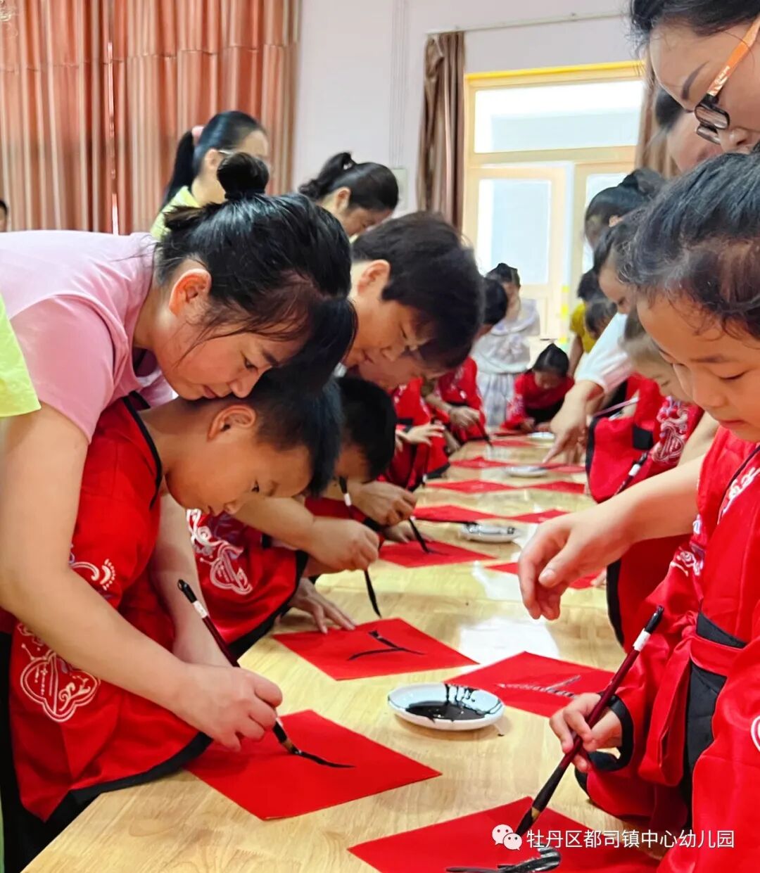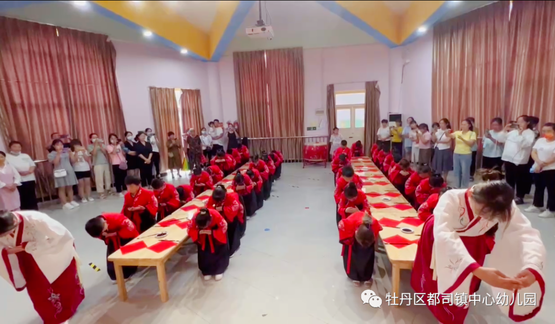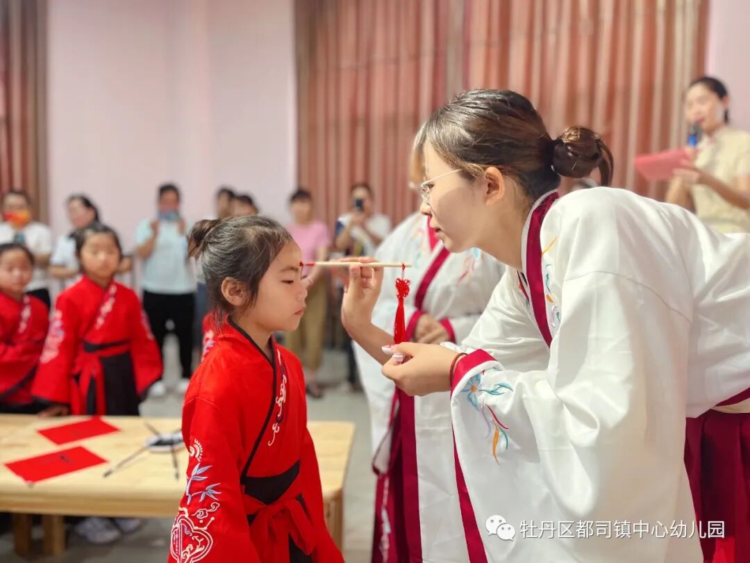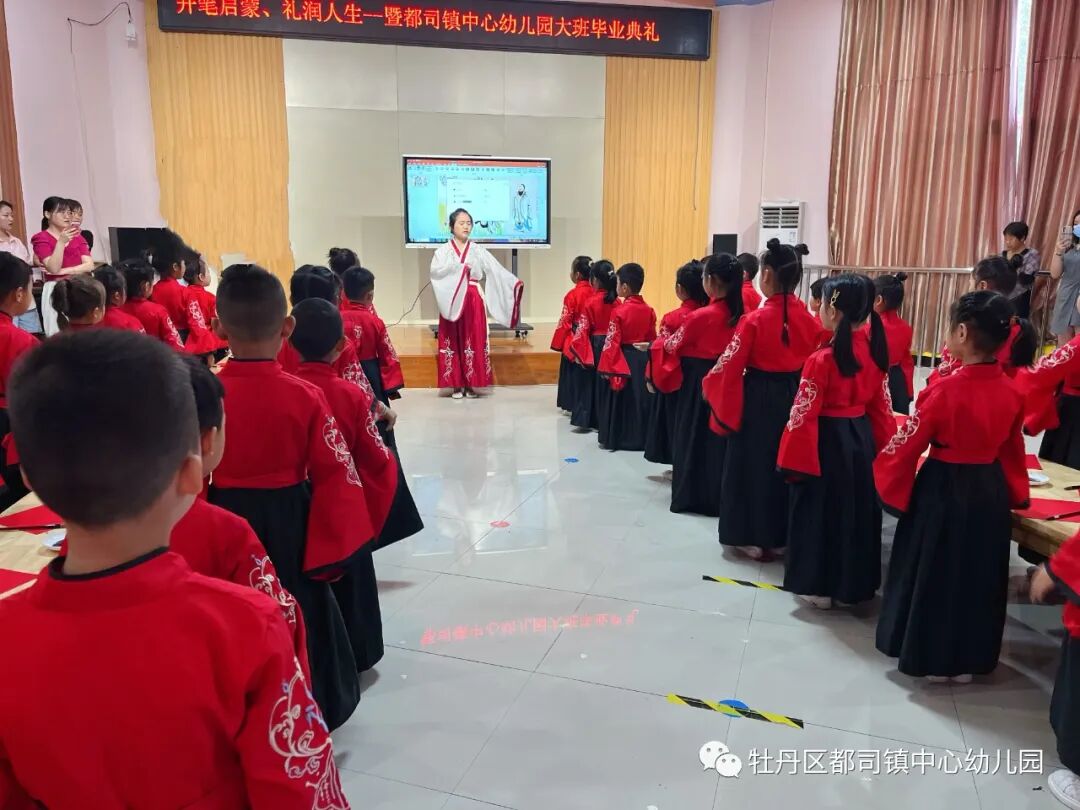 2022年7月6日上午,都司镇复兴少年宫联合中心幼儿园开展了一场严肃庄重的“开笔启蒙,礼润人生”开笔礼仪式。孩子们在仪式中体会勤学苦读、尊师孝亲、崇德立志、仁爱处世的中华传统文化精髓,树立“善”、“正”等行为规范,接受尊师爱学的思想熏陶。