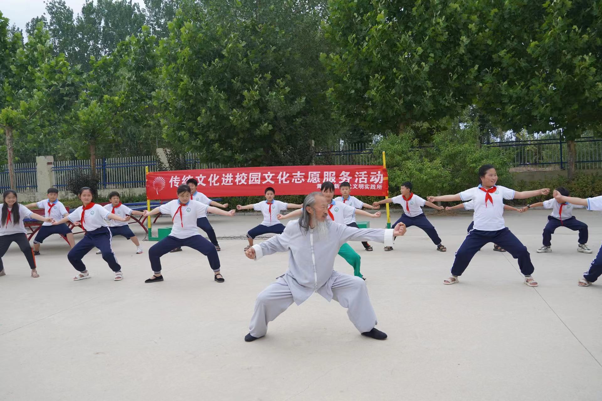 单县“复兴少年宫”教育点之一黄岗镇刘老家小学操场上,学生们正跟着市级非遗项目大洪拳传承人周洪科习练大洪拳。“马步扎好,脚下要稳,动作要准”,周洪科给学生们讲授动作要领,同学们抬手、踢腿、下蹲、出拳,“呼”“哈”掷地有声,一招一式整齐划一,尽显少年们的精气神。