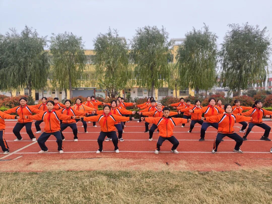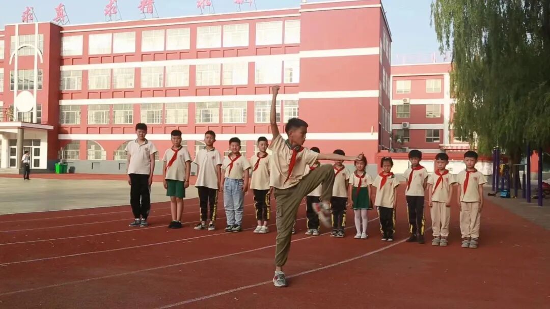 “左脚向左开步,两臂向下交叉,举至头顶,两侧劈拳......”,在武安镇冯庄小学的操场上,学生们正在练习“一路长拳”拳法。自2021年起,学校便将传统武术融入体育课、课间操,作为日常教学活动来开展,逐渐成为常态。 不止冯庄小学,近日,一则《郓城:人人都会功夫瞒不住了》的短视频广泛传播,镜头前,郓城县英才学校、郓城县三屯初级中学、郓城县武安镇中心小学等在校学生,纷纷亮出“绝活”,展示中华武术风采。