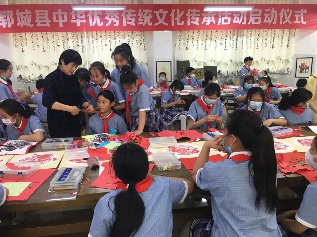 5月25日,“山东手造”非遗剪纸进校园活动在英才学校举行。非遗传承人杨秀玲将剪纸工艺带进校园,为学生们带来了一场精彩的文化体验。8月11日,来自葡萄牙及巴西的50余名华裔未成年人线上参加了“山东水浒少年网上营开营仪式”,共同学习了郓城剪纸课程。