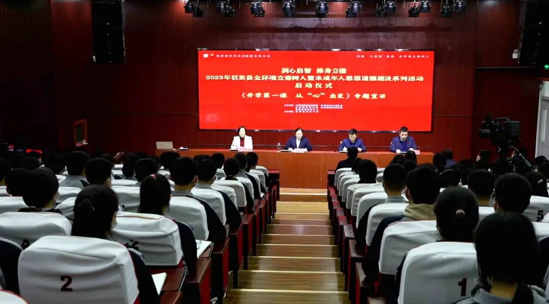 近日,巨野县全面启动全环境立德树人暨未成年人思想道德建设系列活动。活动聚焦学生心理健康,关注学生心理状况,组织开展了《开学第一课 从“心”出发》全环境立德树人专题宣讲,以“心理健康疏导”为主题,开展特色“开学第一课”活动,全县245所中小学、19.6万学生共同收看宣讲直播。