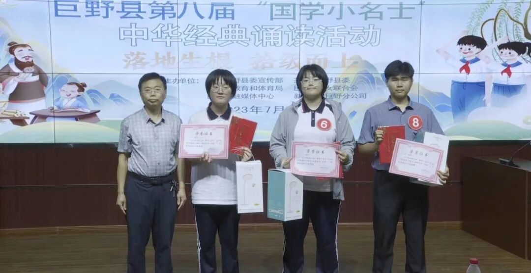 比赛现场,选手们镇定自若、如流对答,精彩机智的回答博得阵阵掌声。精彩的比赛见证了中华经典文化的魅力,展示了巨野县青少年的风采,为现场观众提供了一场关于传统经典的盛宴。现场为获奖选手颁发了证书和奖品。