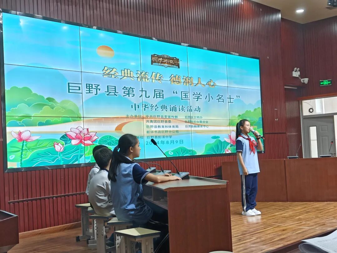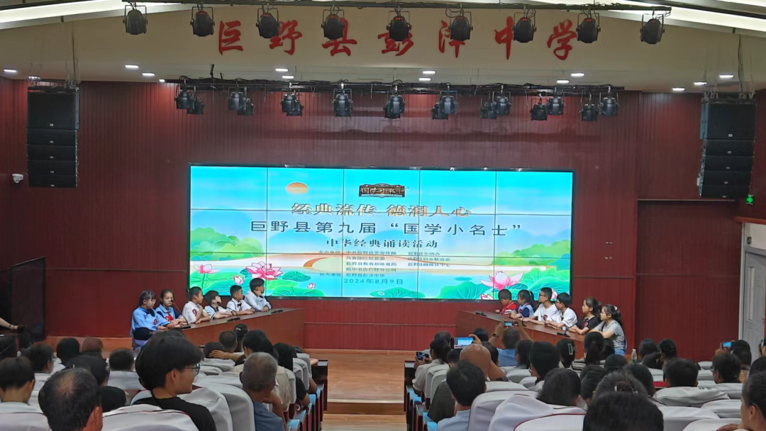 中华文化,源远流长。近日,巨野县第九届“国学小名士”中华经典诵读活动在县彭泽中学报告厅顺利举行。本次活动由巨野县委宣传部、县文明办、团县委、县妇联、县教体局、县融媒体中心、新华书店巨野分公司主办,县彭泽中学承办。活动旨在大力弘扬中华优秀传统文化和传统美德,引导广大青少年积极践行社会主义核心价值观,在全县形成“经典流传 德润人心”的热潮。
