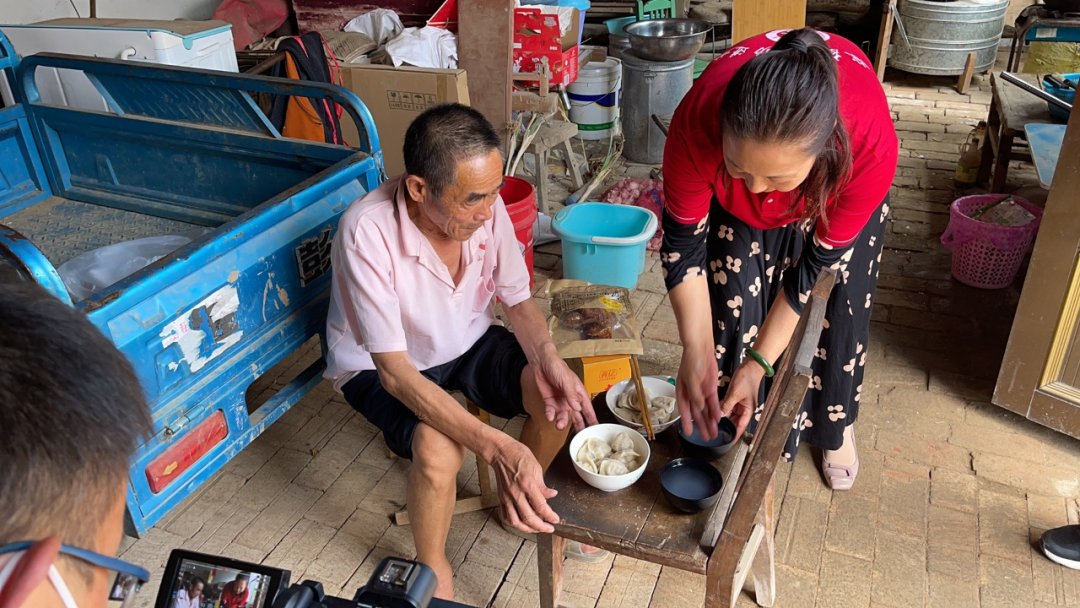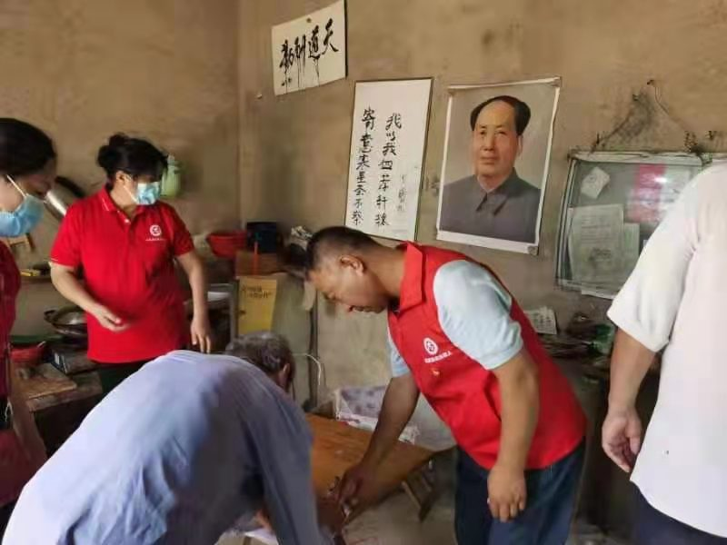 在张楼镇许庄许守库老人家里,退役军人志愿者把老人家中打扫的一尘不染,老人拿出平时舍不得喝的饮料给大家,大家深受感动难以拒绝,又偷偷放到桌子上,看到这一幕时老人眼睛里泛起难以言表的泪花,把志愿者送了一程又一程。