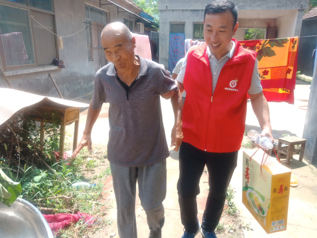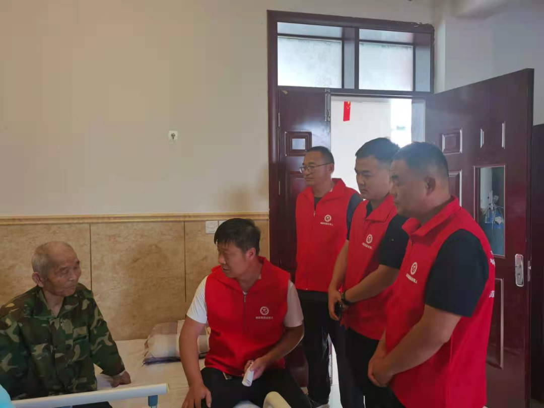学党史、办实事,在庆祝中国共产党成立100周年之际,为深入推进党史学习教育,进一步增强全县退役军人在实现伟大中国梦征程中的凝聚力和战斗力,充分发挥先锋模范作用,大力弘扬中华民族尊老爱老、助人为乐的传统美德,7月3日,成武县退役军人事务局、县志愿者协会联合开展“老兵永远跟党走,金晖助老再启程――幸福敲响五保老人门”之亲情陪护大型志愿服务活动。