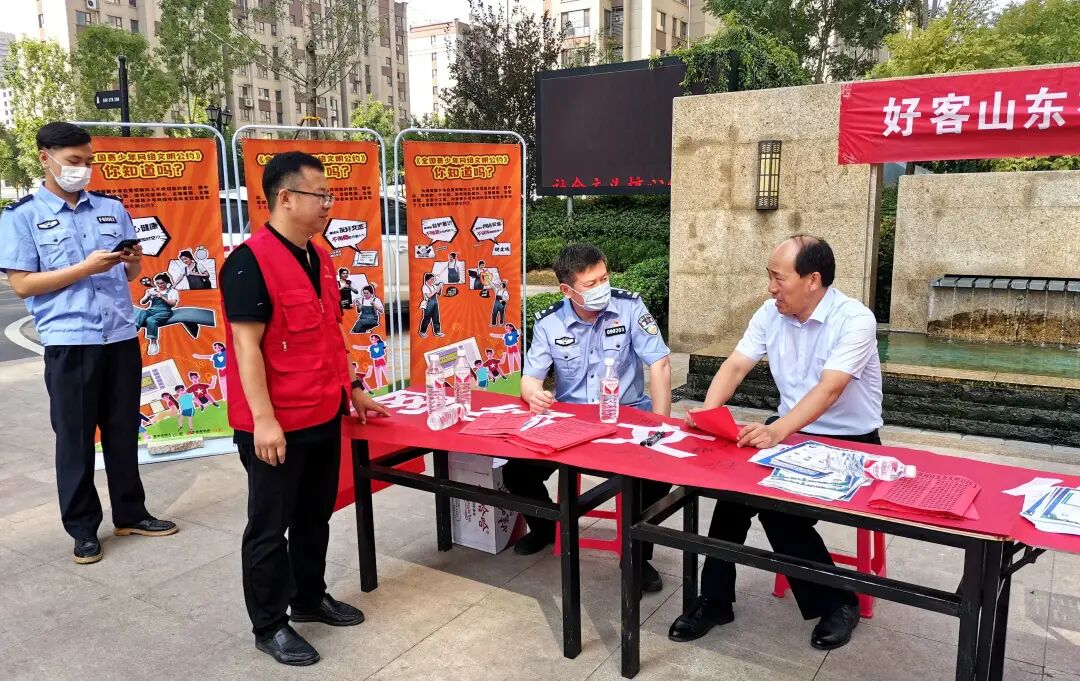 在巨野县佳和御园小区,工作人员和民警向居民发放巨野县网络文明公约、违法不良信息举报方式、防范电信诈骗的“六个一律”等宣传材料,现场讲解如何防范病毒或木马的攻击、遇到不良信息如何投诉举报、电信诈骗常见方式等知识。