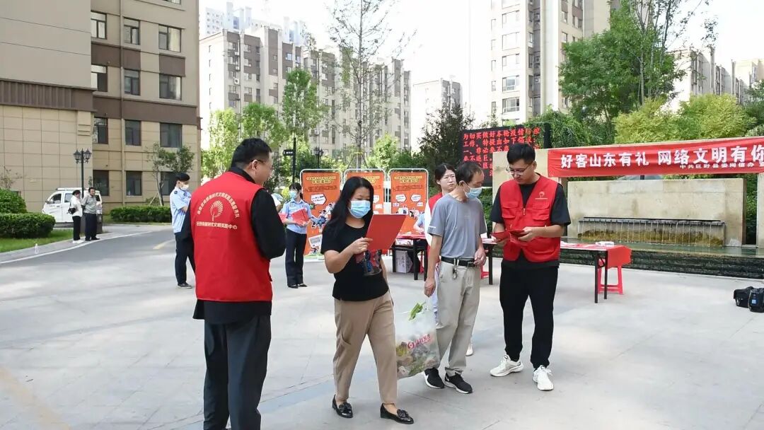 工作人员通过赠送小礼品的方式激发居民参与积极性,并进行签名活动,倡议广大网民提高网络素养,文明互动、理性表达,争做新时代好网民,营造文明向上的网络文化氛围。