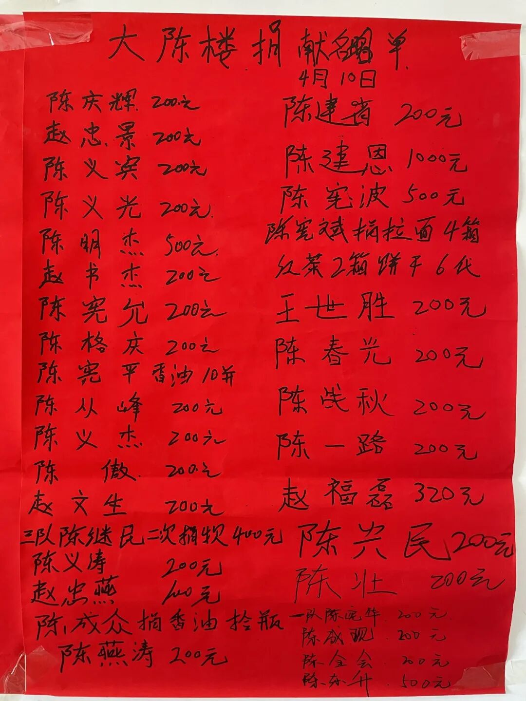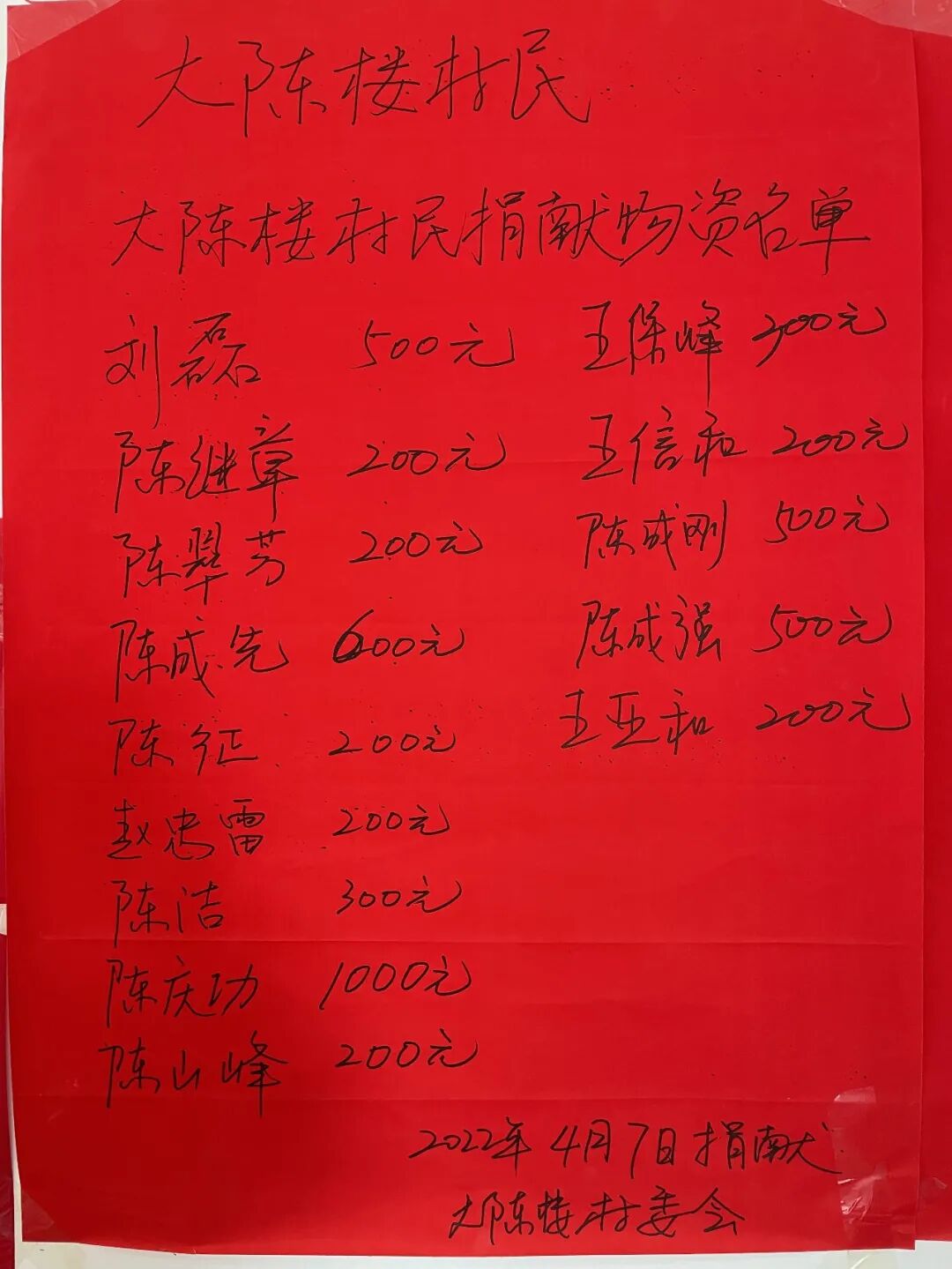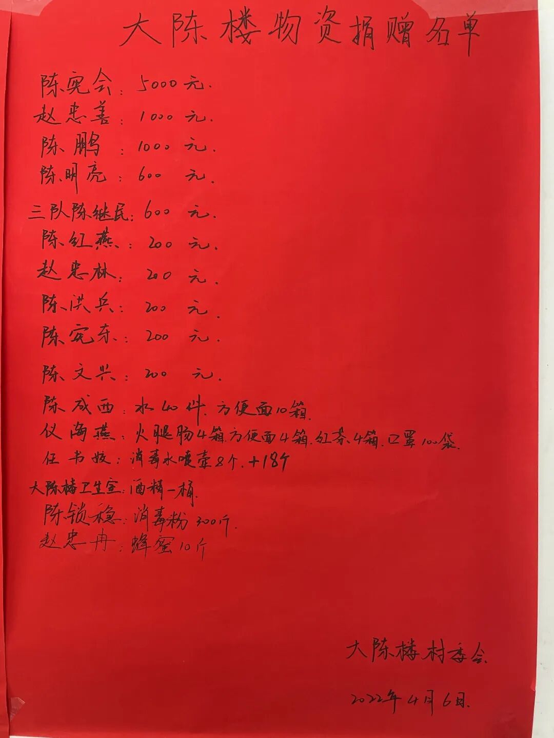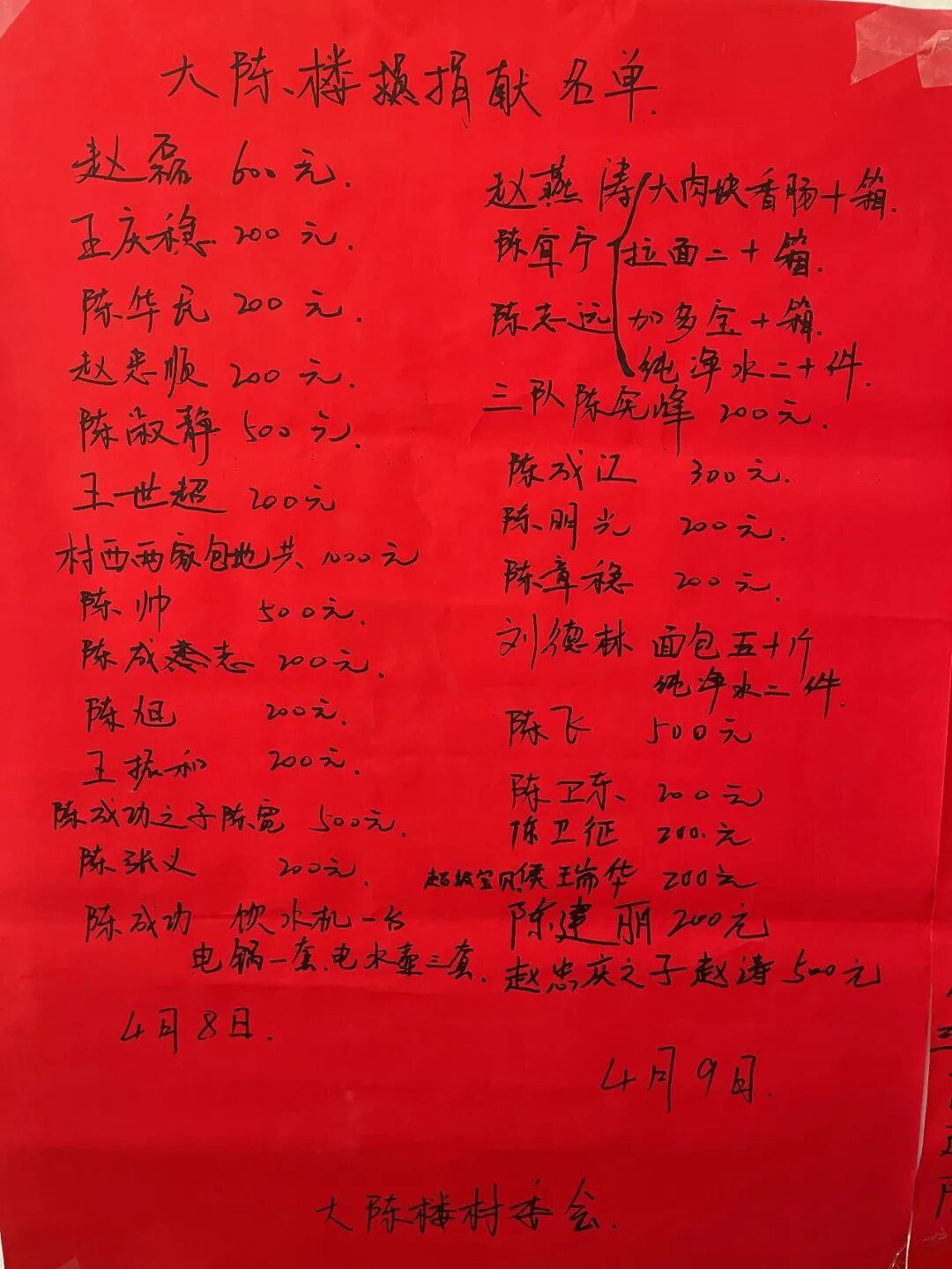 大陈楼村民捐资捐物清单