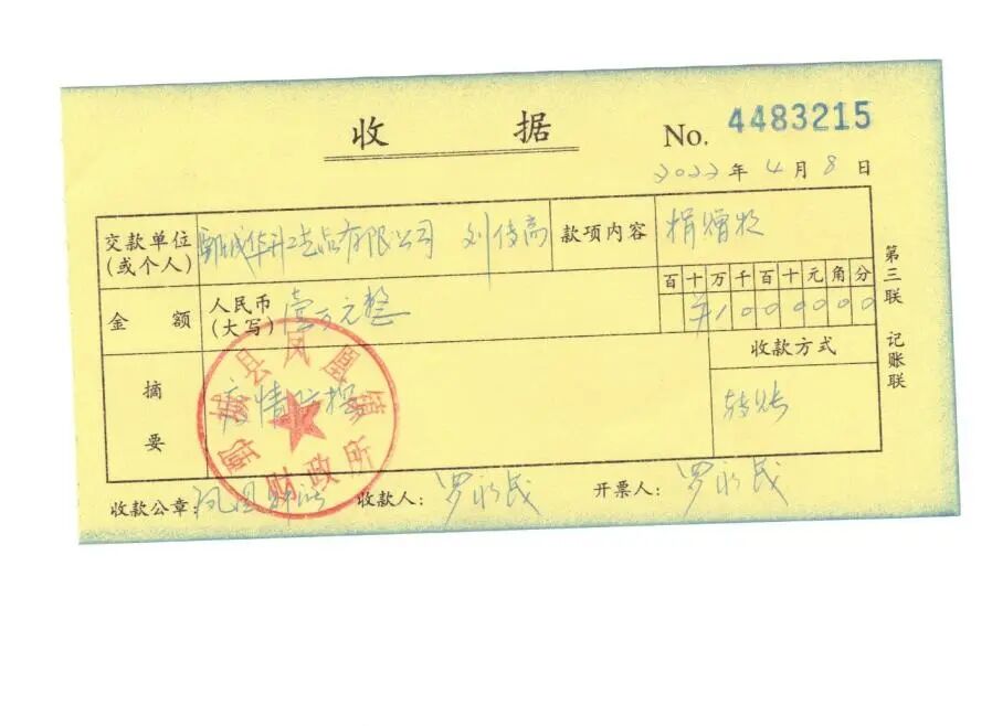 鄄城华升工艺品有限公司刘传高捐赠10,000元