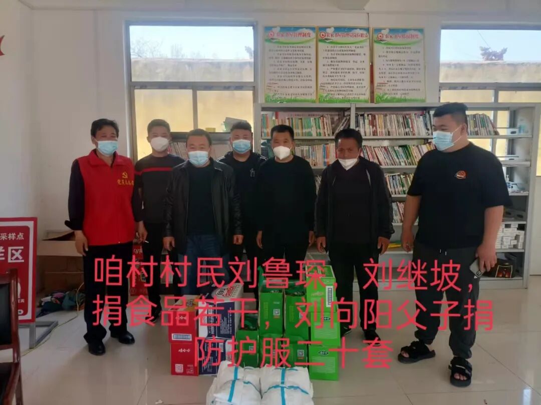 大户村刘鲁琛、刘继坡捐赠食品,刘向阳父子捐赠防护服20套