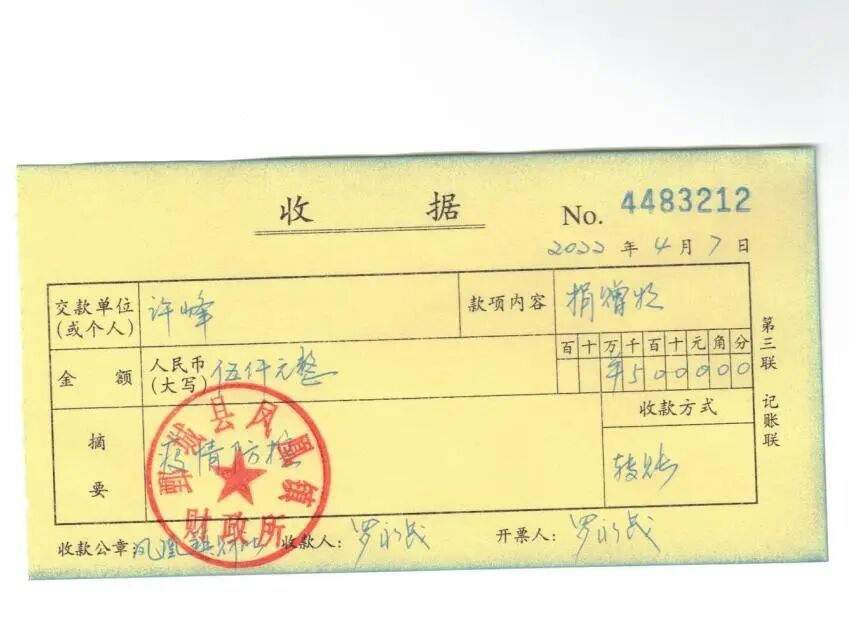 许峰捐赠5000元