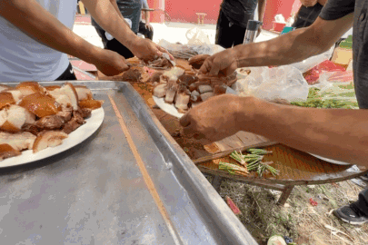 “凤凰村孝老大食堂正式营业啦”,随着一声令下,只见大家开始忙碌起来,端菜、倒水、拿馒头......忙的不亦乐乎,天气再热,也表达不了大家的热情,看着他们吃的开开心心,幸福的聊着天,再累再热也值了。