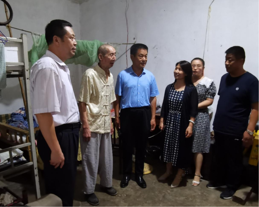 市退役军人事务局志愿者们来到兴华社区,走访慰问了两名老党员,并为他们带去了大米、牛奶、蜂蜜等生活物资,任孔记同两名老党员亲切交谈,关心他们身体健康状况、生活情况。