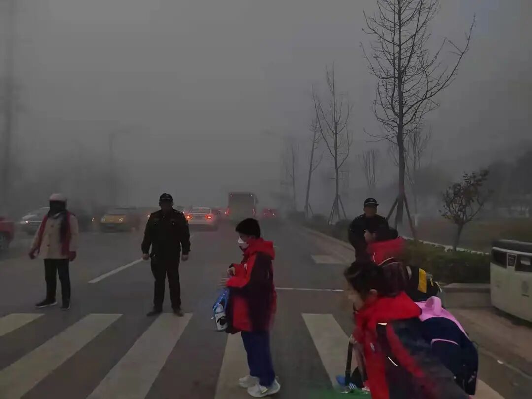 12月15日一早,我县大雾弥漫,能见度很低,护学工作比以往更加重要。青菏执法中队增派人手,加强五台山路小学护学工作,全力保障学生平安进校园,为学生安全上学保驾护航。