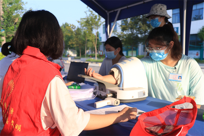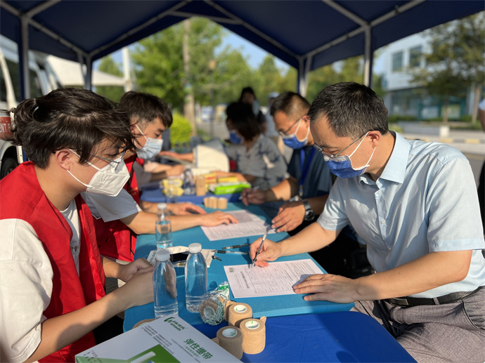 在充分做好各项准备工作的前提下,8月5日上午,菏泽医专附属医院如期开展无偿献血活动。尽管天气炎热,但丝毫没有阻挡全院干部职工、实习学生们奉献爱心的热情。