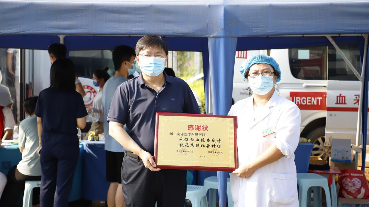 本次无偿献血活动,充分展示了菏泽医专附属医院广大职工、实习学生积极奉献的精神风貌,凝聚了积极向上的力量,传递了爱心。作为省属三级公立医院,菏泽医专附属医院将一如既往地以党建为引领,履行社会责任,强化责任担当,积极开展各类公益活动,为抗疫、创城及各类公益事业贡献菏医力量。