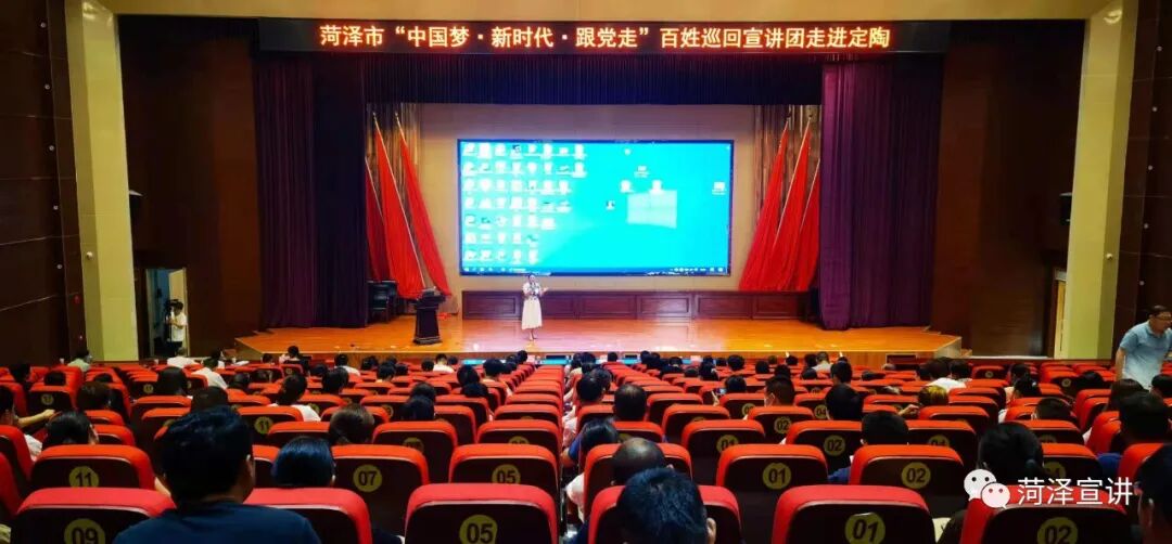 6月28日,菏泽市“中国梦・新时代・跟党走”百姓巡回宣讲团走进定陶进行宣讲,百姓宣讲员慷慨激昂,精神饱满,运用身边好事例、好典型、好经验讲述百姓故事,用朴实语言与真挚感情再现共产党人的高尚情操和革命情怀,营造了知史爱党、知史爱国的浓厚学习氛围。百姓宣讲员讲述得绘声绘色,深入人心,扣人心弦,情到深处,在场观众无不潸然泪下。