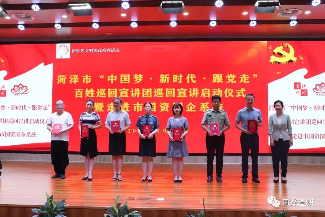 6月25日,菏泽市“中国梦・新时代・跟党走”百姓巡回宣讲团巡回宣讲活动启动仪式暨走进国资委国企系统顺利举办,这次以“中国梦・新时代・跟党走”为主题的百姓宣讲活动既是党史学习教育的一项活动,还是理论宣讲活动,也是文明志愿活动。百姓宣讲活动是宣传真正深入基层、走进百姓的一次新的尝试,实践证明,只要创新方式方法,找准角度,宣传工作可以受到群众的欢迎、接受,使党的理论思想春风化雨、潜移默化地走入群众心中。