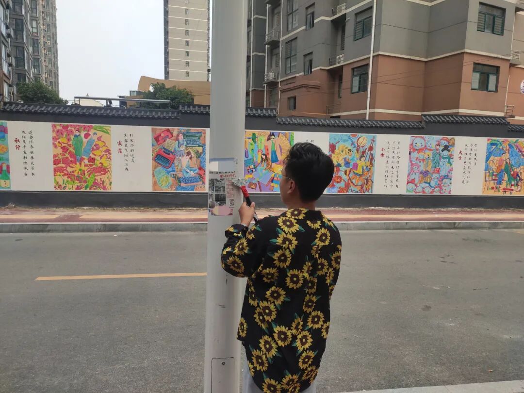 16日,市民举报在中山路“网红街”美丽的墙绘旁,有商家随意张贴小广告,破坏了市容市貌。接到举报后,开发区大队执法人员来到了中山路上,查看小广告张贴点,并根据广告上的地址,找到了张贴广告的商家,对其进行宣传教育,普及法律知识。
