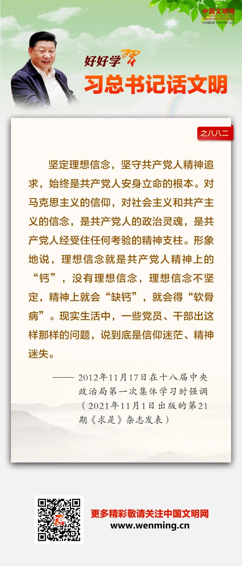 坚定理想信念,坚守共产党人精神追求,始终是共产党人安身立命的根本。对马克思主义的信仰,对社会主义和共产主义的信念,是共产党人的政治灵魂,是共产党人经受住任何考验的精神支柱。形象地说,理想信念就是共产党人精神上的“钙”,没有理想信念,理想信念不坚定,精神上就会“缺钙”,就会得“软骨病”。现实生活中,一些党员、干部出这样那样的问题,说到底是信仰迷茫、精神迷失。