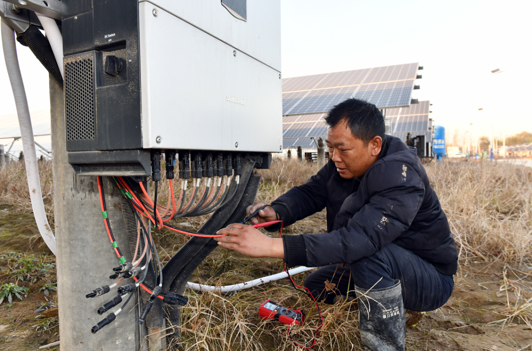 占地160余亩的光伏发电项目坐落在焦园乡后黄集村,日前,管理员黄红海手机上的监控软件显示逆变器不通电,他赶紧前来维修。今年以来,该项目收益已超过200万元。