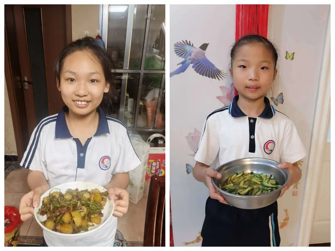 同学们买到新鲜蔬菜后,走进厨房,用稚嫩的双手,尝试着创造特色佳肴,常见的食材因是自己汗水浇灌而赋予了特殊的风味,堪称一场“美食嘉年华”。同学们用实际行动致敬辛勤的农民,致敬每一位用心生活的劳动者。