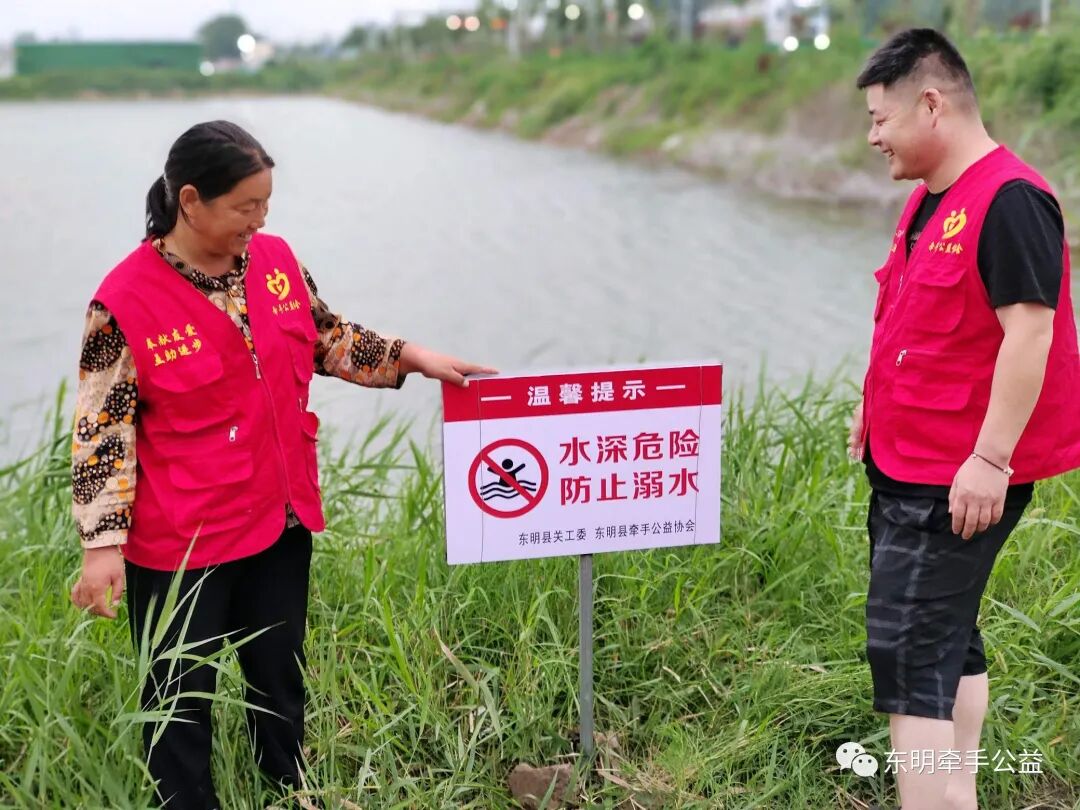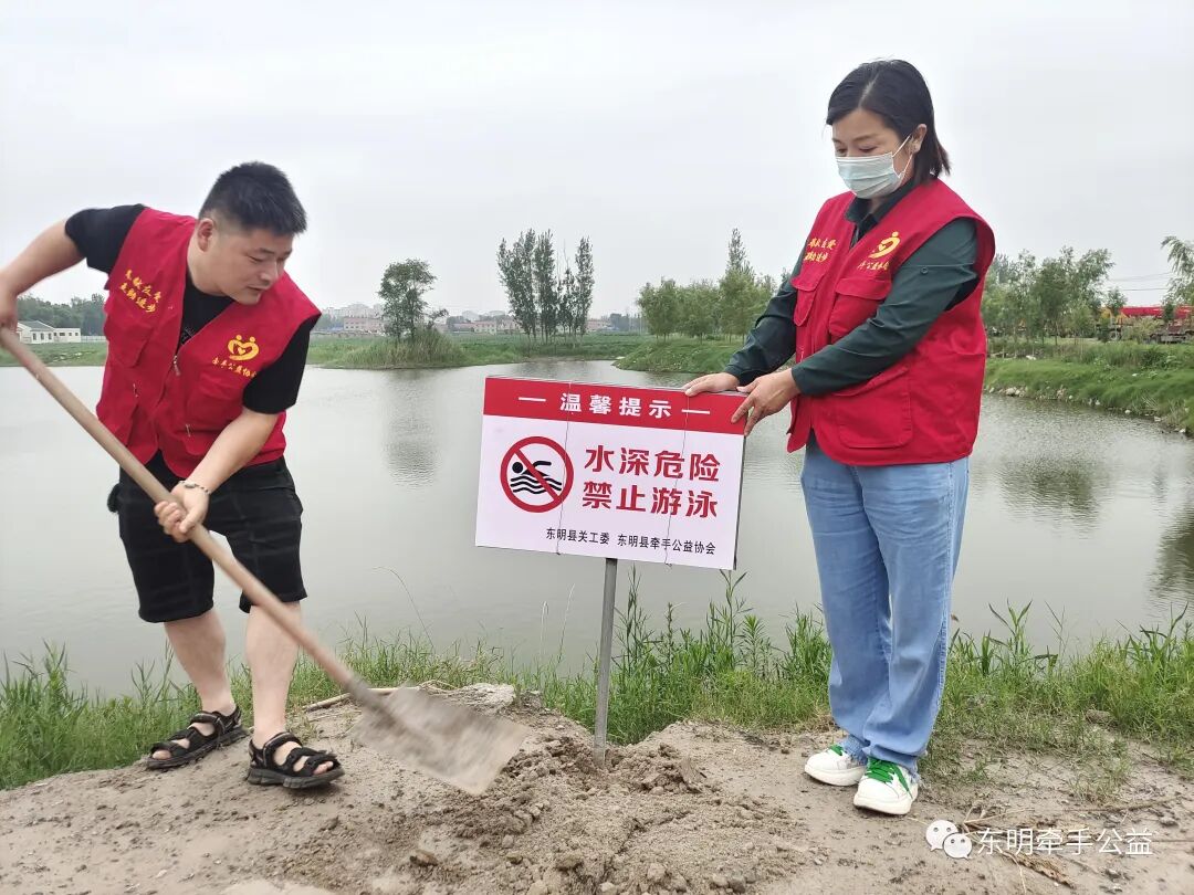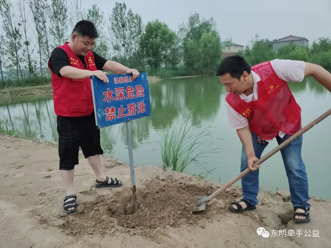 菏泽东明志愿者继续开展巡河阻泳、修缮设立防溺水警示牌,文明实践在城关