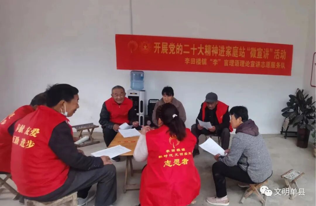 为全面贯彻领会党的二十大精神,扎实推动学习贯彻工作,增强全县群众的思想道德素质,引导广大党员群众把思想统一到党的二十大精神上来,单县依托文明实践所、实践站、家庭站、善益站等各级文明实践阵地,广泛开展党的二十大精神宣传学习、理论宣讲、心得分享等志愿服务活动。
