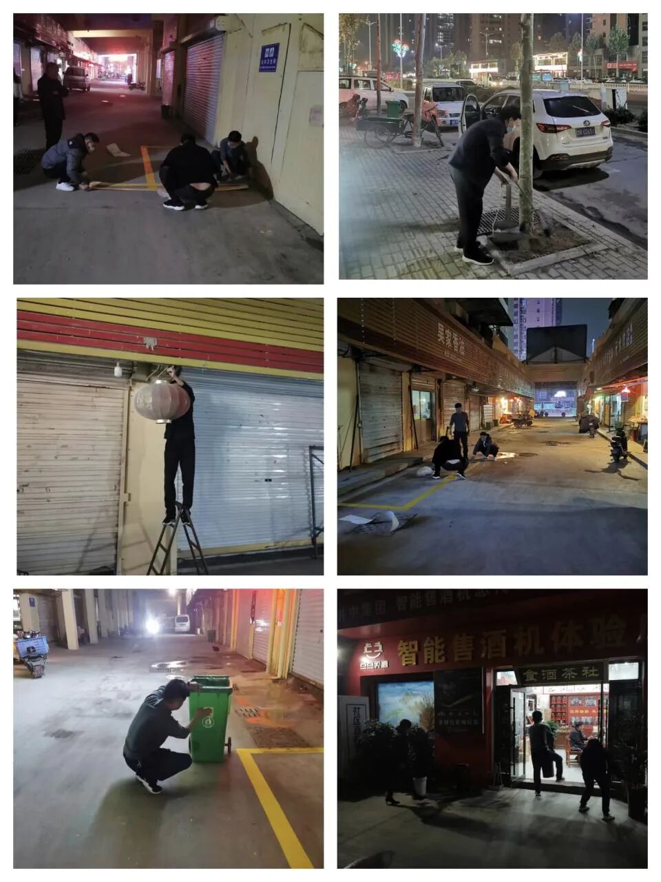 11月19日晚,为落实金太阳商贸城治理工作要求,市场监管局工作人员利用晚上市场业户停业间隙,加班加点清理卫生,净化环境,完善创城各项细节,高标准完成整改提升。