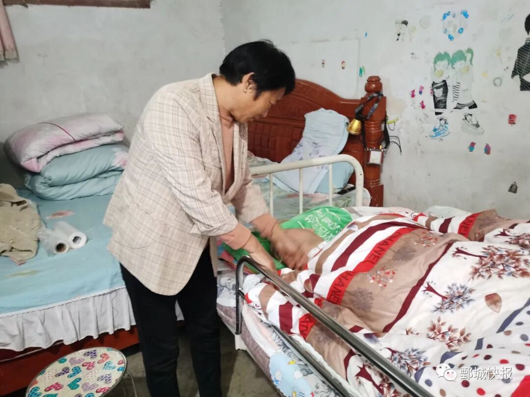 ▲刘爱梅照顾植物人丈夫