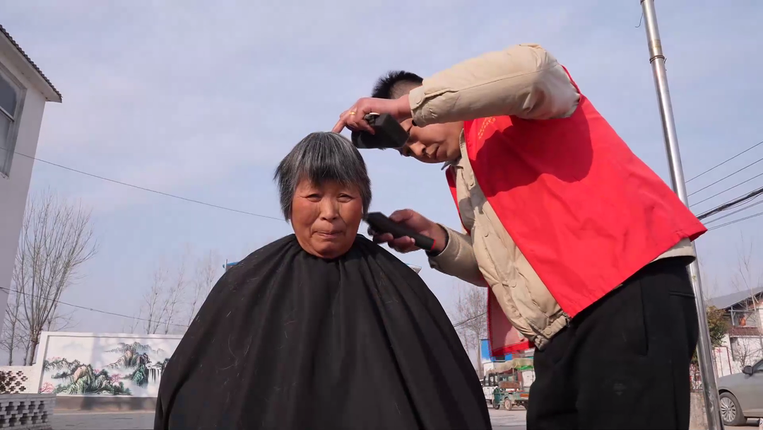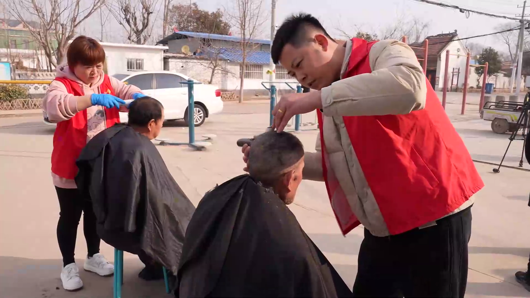 志愿者王长勇:通过这次活动咱给村民带来方便,献咱自己的一份爱心,毕竟自己会这门手艺,通过自己的手艺改变一下咱村民的精神面貌。