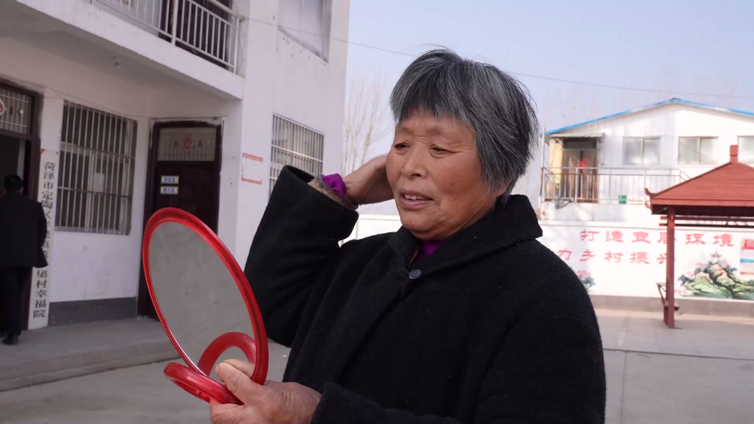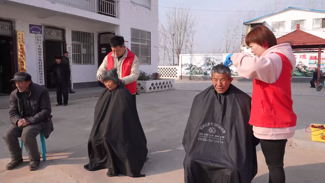 定陶区半堤镇董小集村村民董金苹:二月二,我们这里都想去理发图个好兆头,我也想着去理个发,正好志愿者上村里来了,五分钟就理好了,心里感到高兴,爽快,我也希望我这一年健健康康,平平安安。