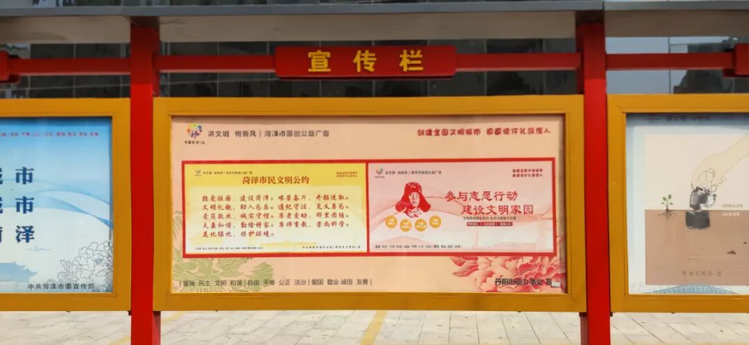 “参与志愿行动,建设文明家园”“创建全国文明城市,做遵德守礼菏泽人”……漫步菏泽城区,大街小巷随处可见创城公益广告,让广大市民“抬头就可见文明”,在潜移默化中受到文明新风的熏陶。