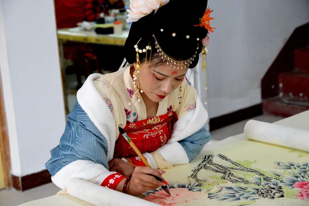 依托“中国工笔画之乡”这张金字招牌,组建由国家级书画家、省级书画家、返乡画师等相关从业人员组成的“陪伴”志愿服务队,广泛招收学员,积极组织引导辖区内书画爱好者、青年妇女等参与书画培训,陆续开展基础班、提升班30余场次,培育近2000余名乡村书画人才,实现从培训到销售的全流程服务。