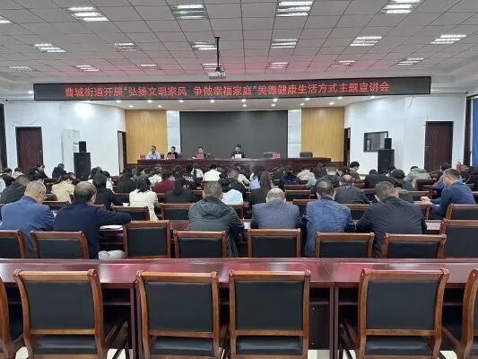 曹城街道积极探索美德健康新生活路径,组织开展“弘扬文明家风 争做幸福家庭”美德健康生活方式主题宣讲会。会上,曹城街道美德健康生活方式志愿服务队围绕家风家教,以身边例子、名人事迹、典型事件,倡导注重家庭、注重家教、注重家风等观念,推动形成好家风、好民风。