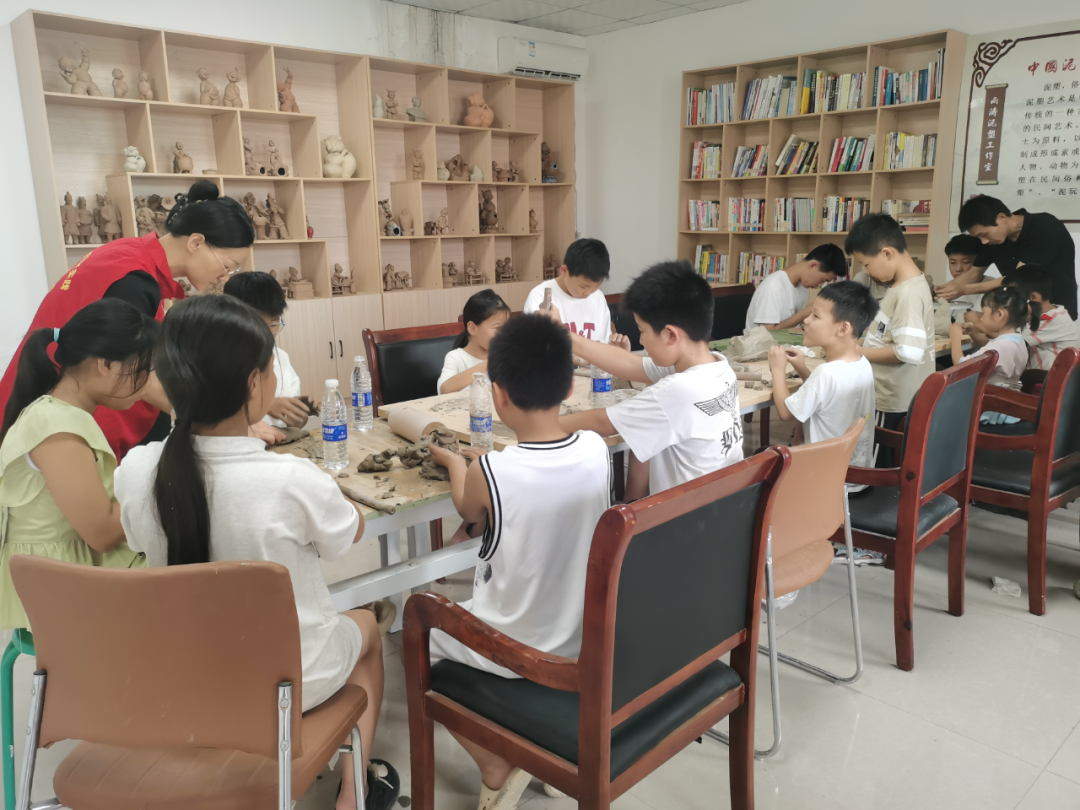 泥塑陶艺课凭借“接地气、能上手”的特质,成了最受群众青睐的非遗项目。志愿者程雨涛全程耐心指导,从揉泥时的力度把控,到捏形时的细节雕琢,再到刻纹里的文化寓意,一步步带领孩子们沉浸式体验泥塑创作。当一件件带着童趣的泥塑作品完成时,孩子们举着自己的成果,脸上满是喜悦与自豪,真切感受着非遗创作的乐趣。