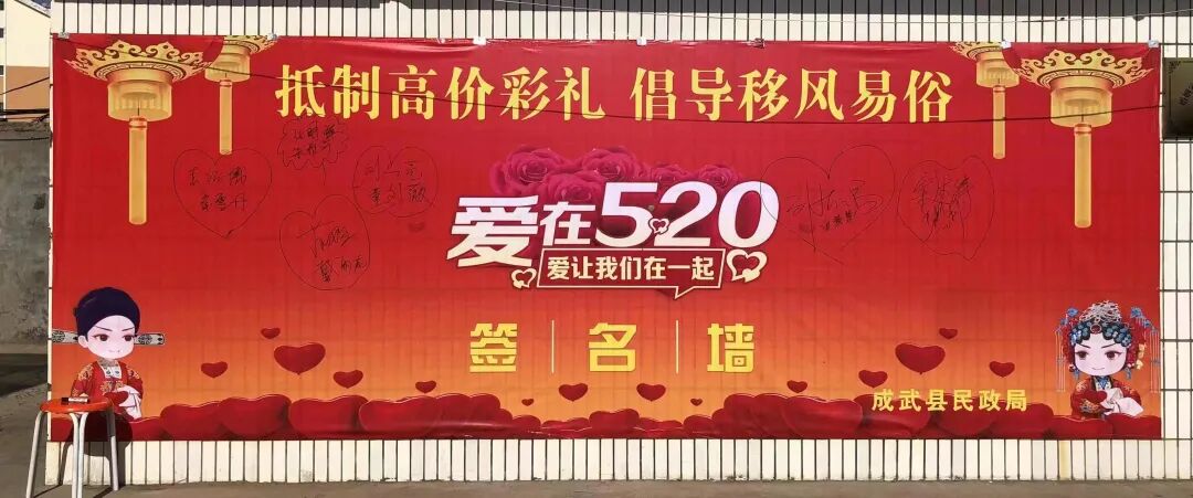 “520”因谐音“我爱你”,而备受青睐,成为青年男女结婚登记的首选日期。为推动移风易俗深入开展,倡导婚事新办简办的文明新风和美德健康生活方式。成武县组织开展了移风易俗宣传教育活动。