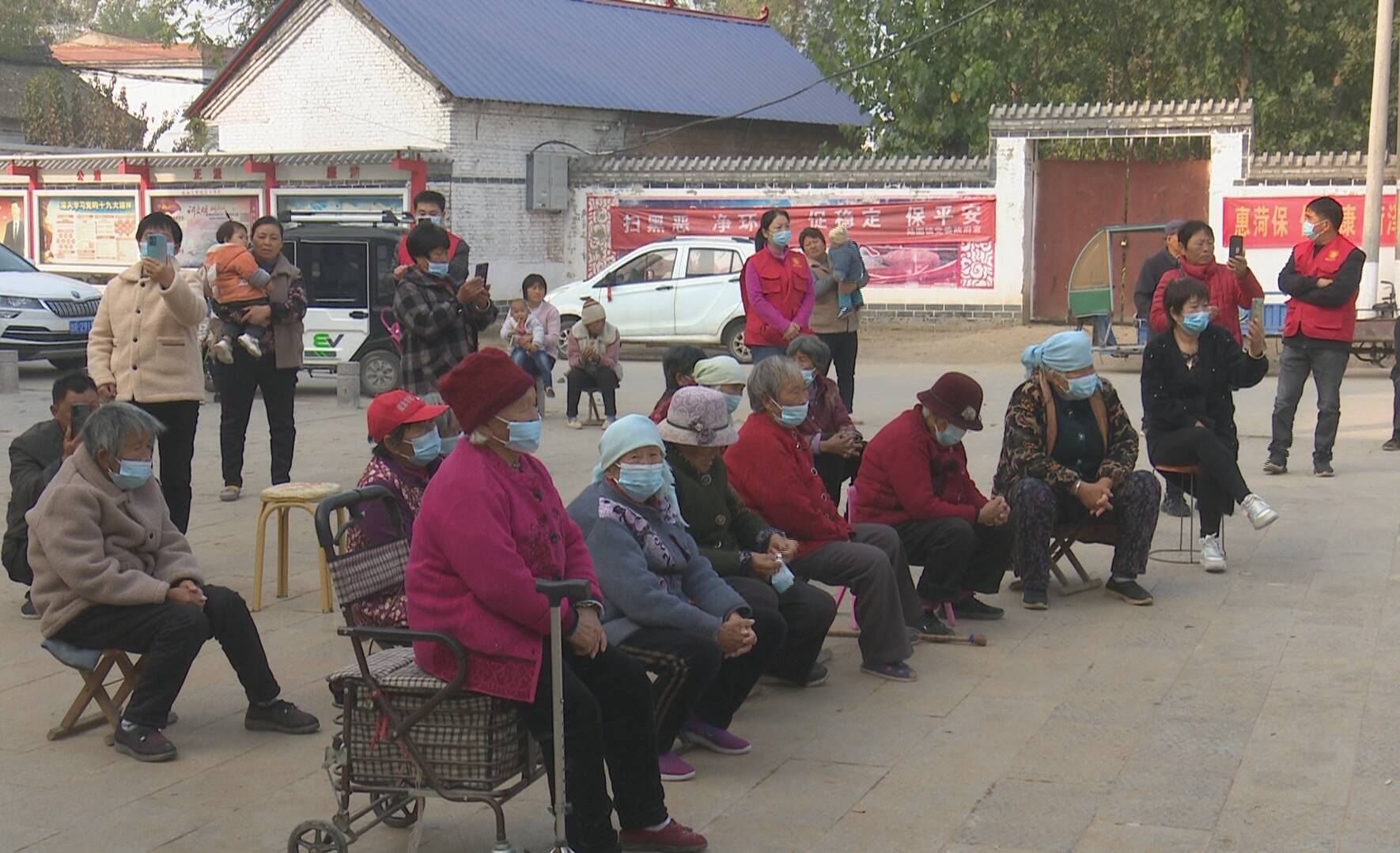 现场音:“二十大召开在北京,神州大地迎春风