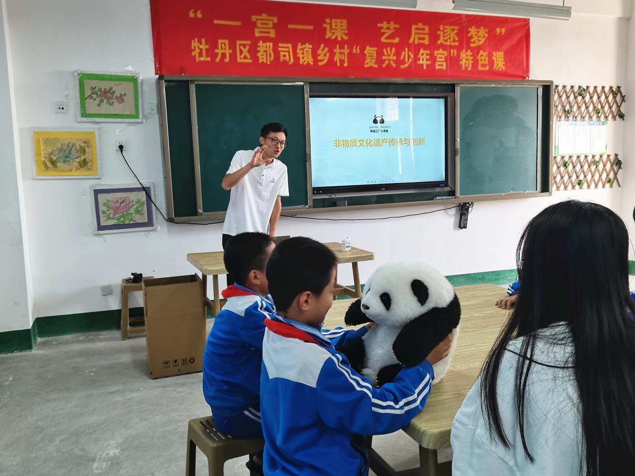 牡丹区各镇街以乡村复兴少年宫、新时代文明实践站等为载体,创新开展了丰富多彩的传统优秀文化传承活动,启迪童心,激发童趣。都司镇乡村复兴少年宫以“熊猫来了”为主题,组织部分小学生学习了裘皮熊猫玩具的制作,感受传统工艺制作乐趣。孩子们还在志愿者老师们的引导下发挥想象画出“心中美丽的熊猫”,大家尽情浑洒笔墨,一幅幅生动可爱的大熊猫很快跃然纸上。