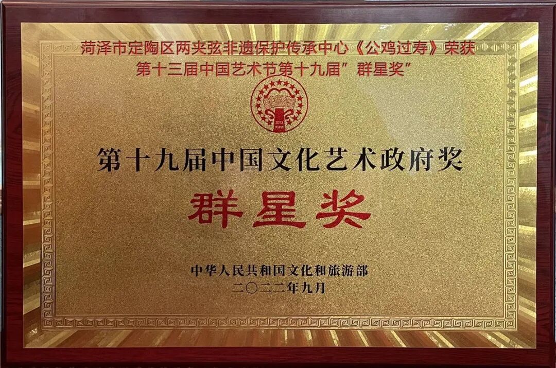 “定陶两夹弦是国家级非物质文化遗产,定陶两夹弦非遗保护传承中心,是目前全国唯一的两夹弦专业剧团。”说起两夹弦,侯彦丽如数家珍,“近年来,我们创演了《爱心家园》《春秋商圣》《楼长嫂子》《退彩礼》《公鸡过寿》等多部群众喜欢看、接地气的优秀作品,每年给群众送戏下乡500多场次,获得省级、国家级荣誉20多项,《爱心家园》《公鸡过寿》还获得过中国第十届、第十三届艺术节‘群星奖’”。