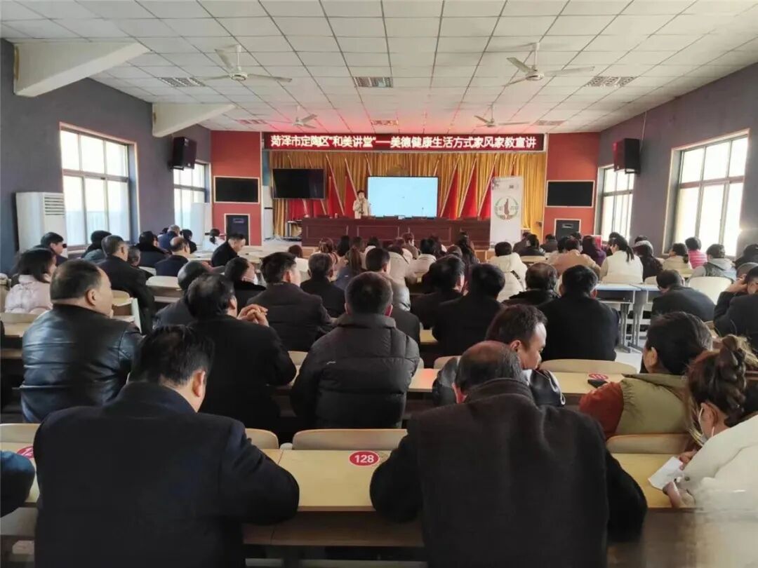 “和美讲堂”是定陶区围绕“中华优秀传统文化创造性转化、创新性发展”这一要求,创新打造的传统文化宣讲品牌。宣讲老师通过结合身边例子、历史典故、社会热点等,深入浅出地讲述家风家教的重要意义,为参加人员上了一堂生动而精彩的“家教”课。
