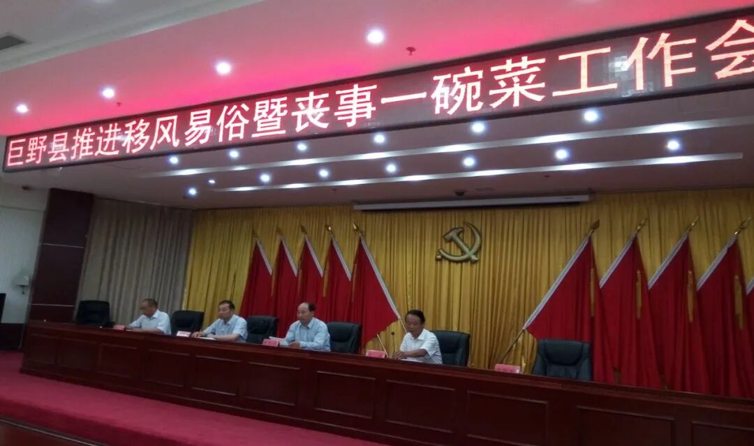 近年来,巨野县委县政府组织多个调研组,先后赴全县200余个村庄走访群众近万人次,通过全民大讨论统一思想、汇集民间群众智慧,从“丧事一碗菜”入手,发挥农村基层组织、红白理事会及村规民约作用,简化治丧形式,走出了一条绿色、惠民的殡葬改革新路子,获得群众广泛称赞。丧事就餐“一碗菜”做法推广后,中央文明办简报《精神文明建设》以“巨野县推行丧事就餐‘一碗菜’”为题进行了交流,来自江西、河南、内蒙古等地的20余个省内外地市到巨野县学习借鉴。