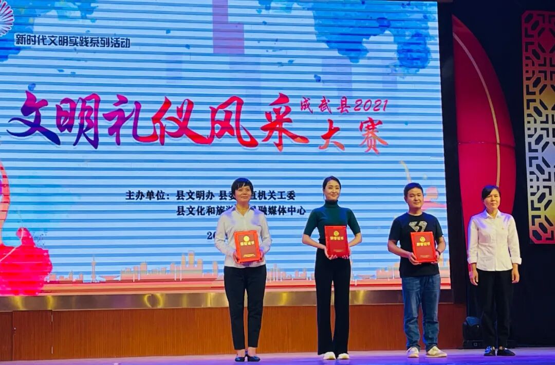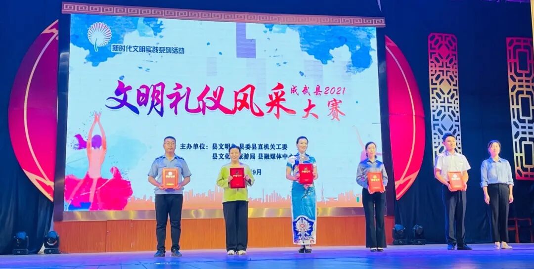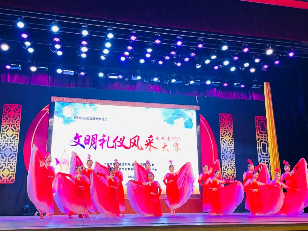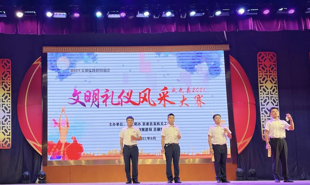 为深入贯彻落实党的十九大报告中关于开展弘扬时代新风行动的部署要求,培育和践行社会主义核心价值观,促进全县主要行业部门进一步创新服务理念、拓展服务领域、提高服务质量、展示文明风采,调动广大干部职工的工作积极性和创造性,提高广大干部职工对创城工作的知晓率和参与度,促使主要行业部门在创建文明城市工作中发挥示范引领作用,9月18日下午,由县文明办、县委县直机关工委、县文旅局、县融媒体中心联合举办的新时代文明实践系列活动――成武县2021年文明礼仪风采大赛在县文化中心一楼剧场成功举办。