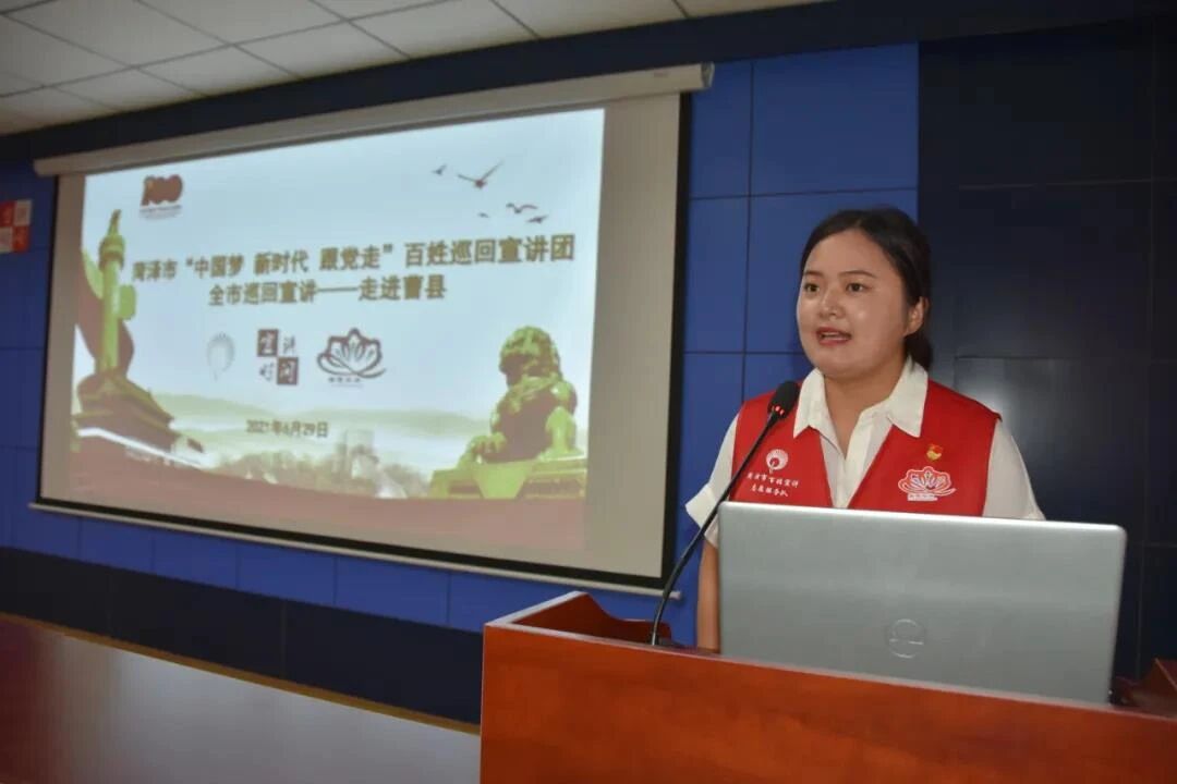 菏泽市曹县将党史学习教育与新时代文明实践深度融合,依托新时代文明实践中心、所、站三级载体,通过搞活动、办比赛、开展志愿服务,让文明实践遍地开花,让党史学习教育深入人心。