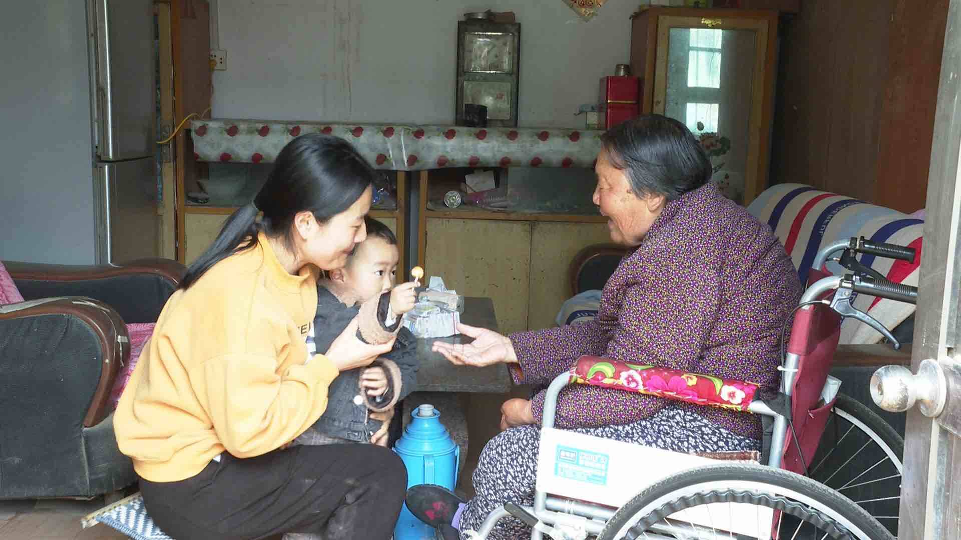 杨钦钦说:“我早晨都会早起一会,(经常)给奶奶测血糖,随时观察她身体情况,周末有时间的时候,我就会带着我的两个小孩子来看爷爷奶奶,陪他们拉拉家常!”