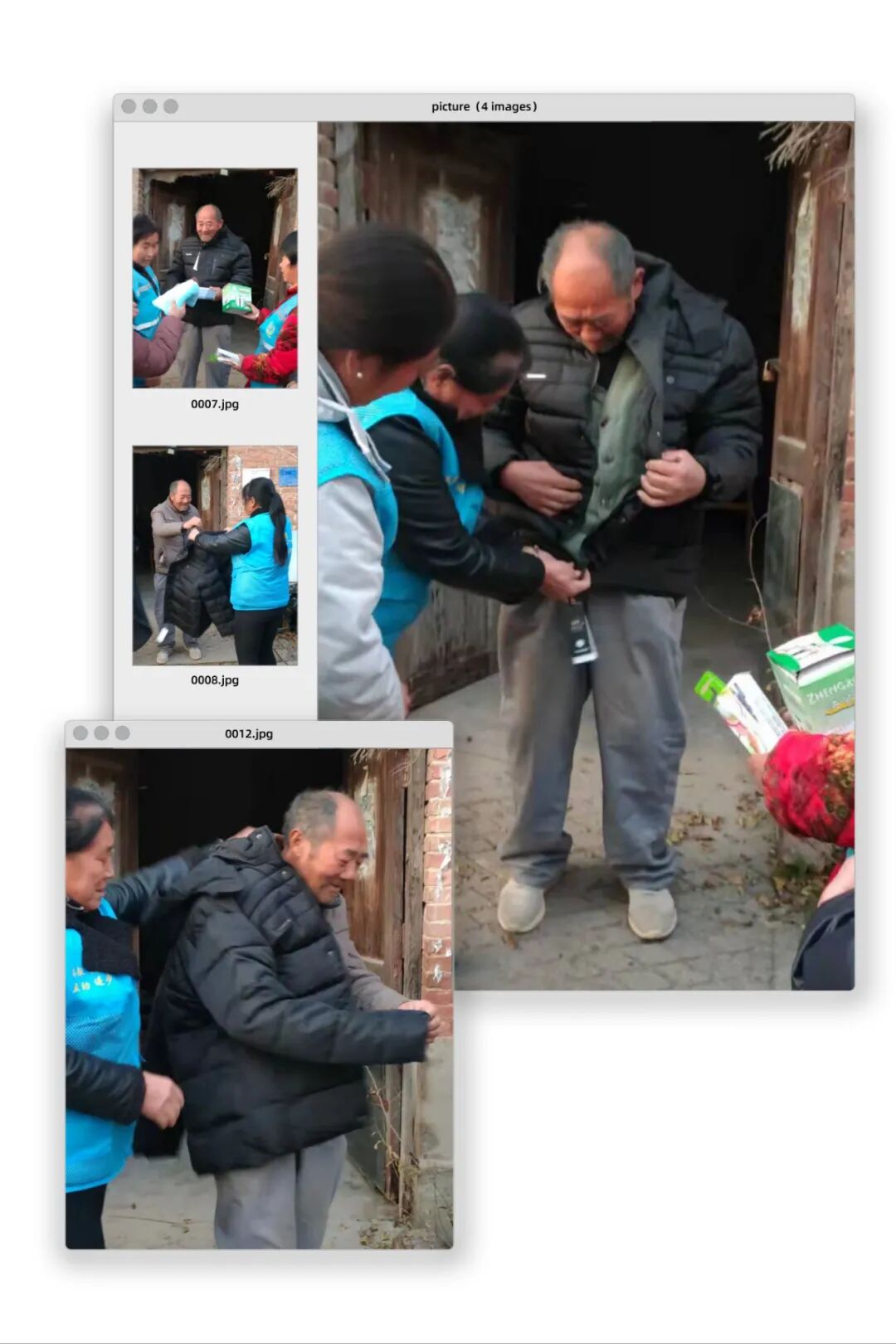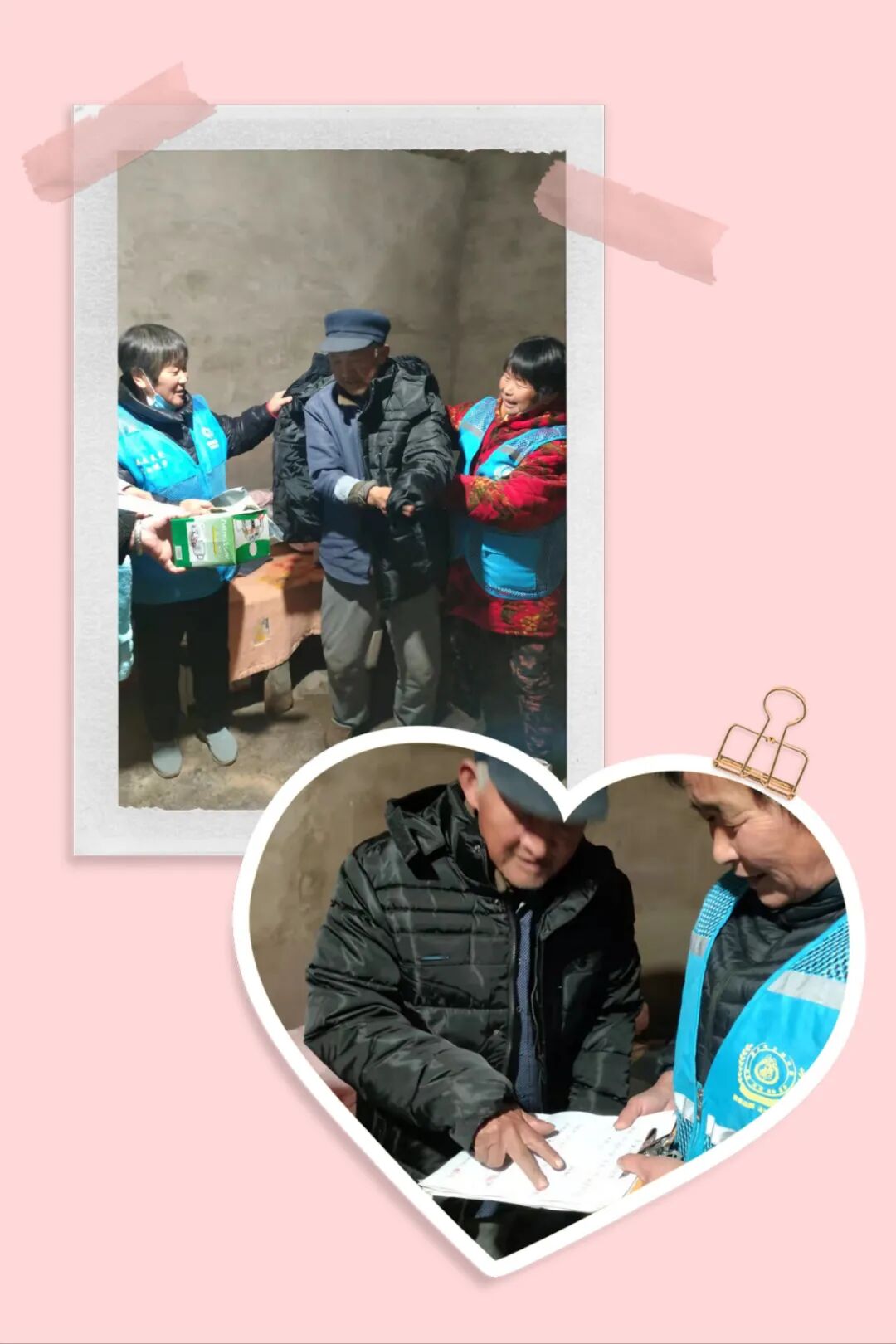 在回访慰问中,志愿者每到一户都详细了解他们近期的身体及生活情况,鼓励他们要调整心态,注重身体健康。还为他们带去了水杯、牙刷、牙膏生活用品和御寒棉衣,并细心帮助老人试穿。厚厚的棉衣不仅能帮助老人们抵御寒冬,也承载着敬老爱老之情。随后,志愿者还为他们整理了房屋、打扫了庭院。