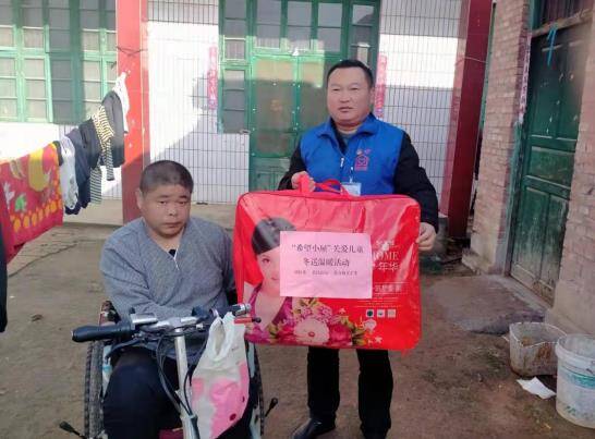元旦期间,在鄄城县大埝镇,当地青年志愿者一大早就来到了杨柳行村杨丹家中,为她送去棉被等生活用品。