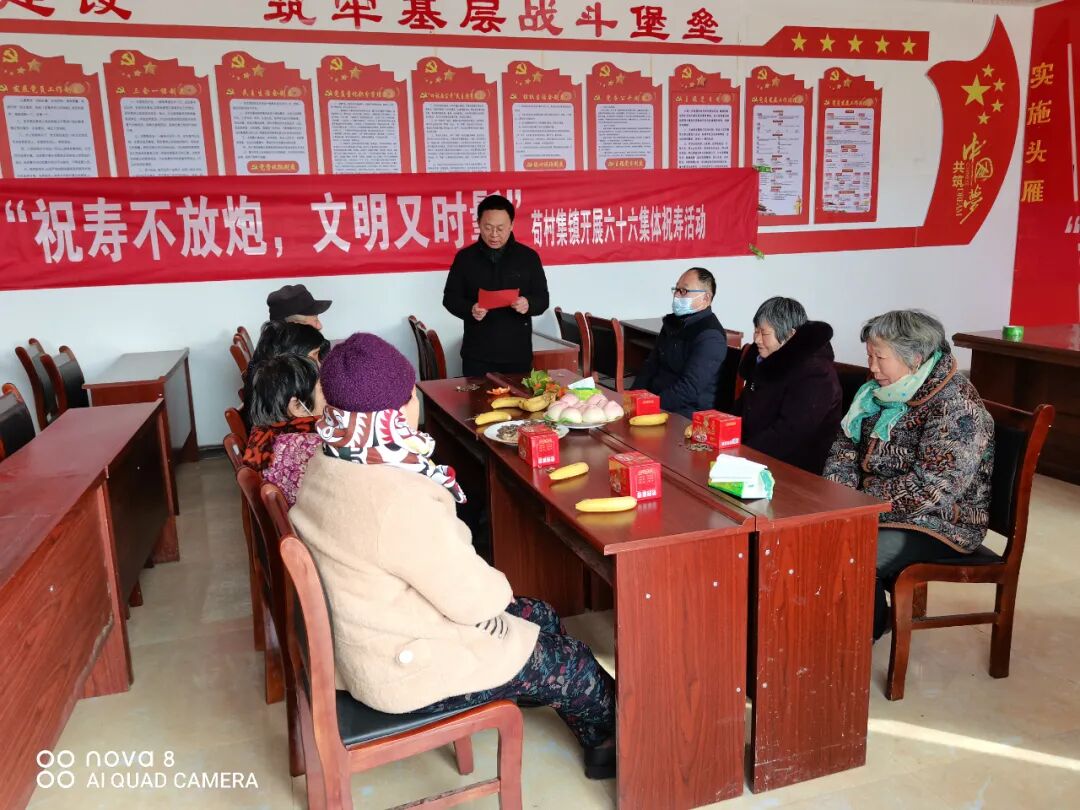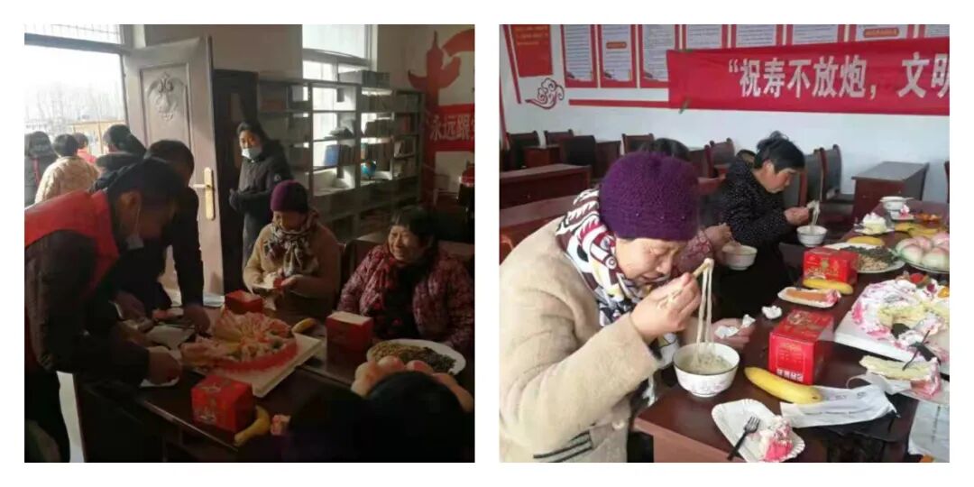 在苟村集镇杨庄村新时代文明实践站,志愿者为老人们蒸了寿桃,做了蛋糕,下了长寿面,老寿星们脸上洋溢着幸福的微笑。老人家属表示,“移风易俗提得好,集体做寿既省钱又热闹。”“集体做寿办得好,既表达了对老一辈的敬意与慰问,更对晚辈有潜移默化的教育意义。”