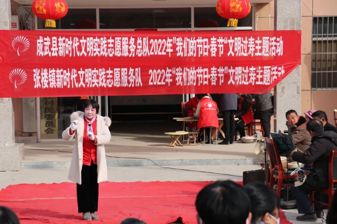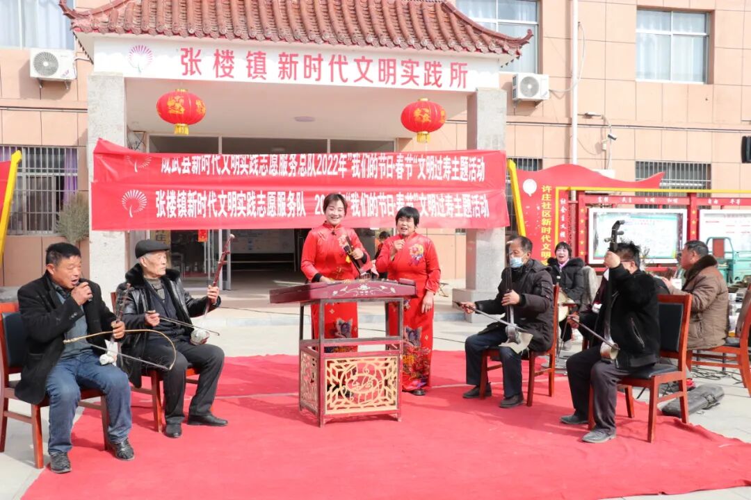 在张楼镇新时代文明实践所、苟村集镇杨庄村新时代文明实践站,文艺志愿服务队的志愿者们正在为老人们表演广场舞、秧歌、歌曲、戏曲等文艺节目,精彩的表演赢得了老人的阵阵掌声,个个笑得合不拢嘴。